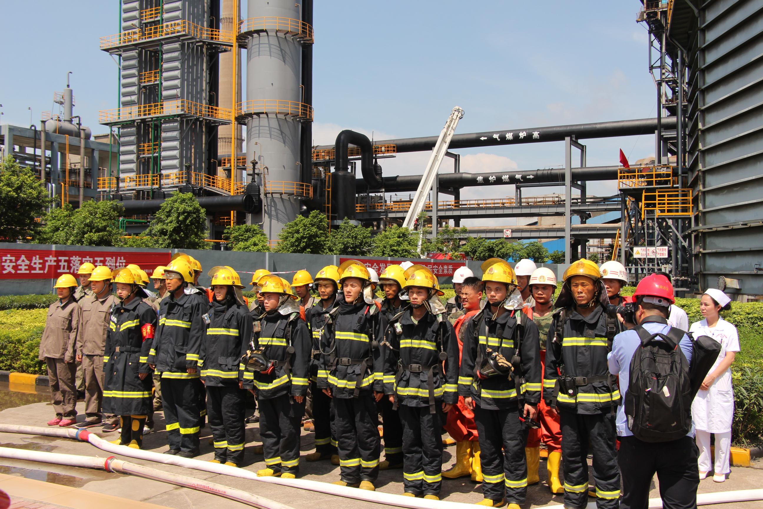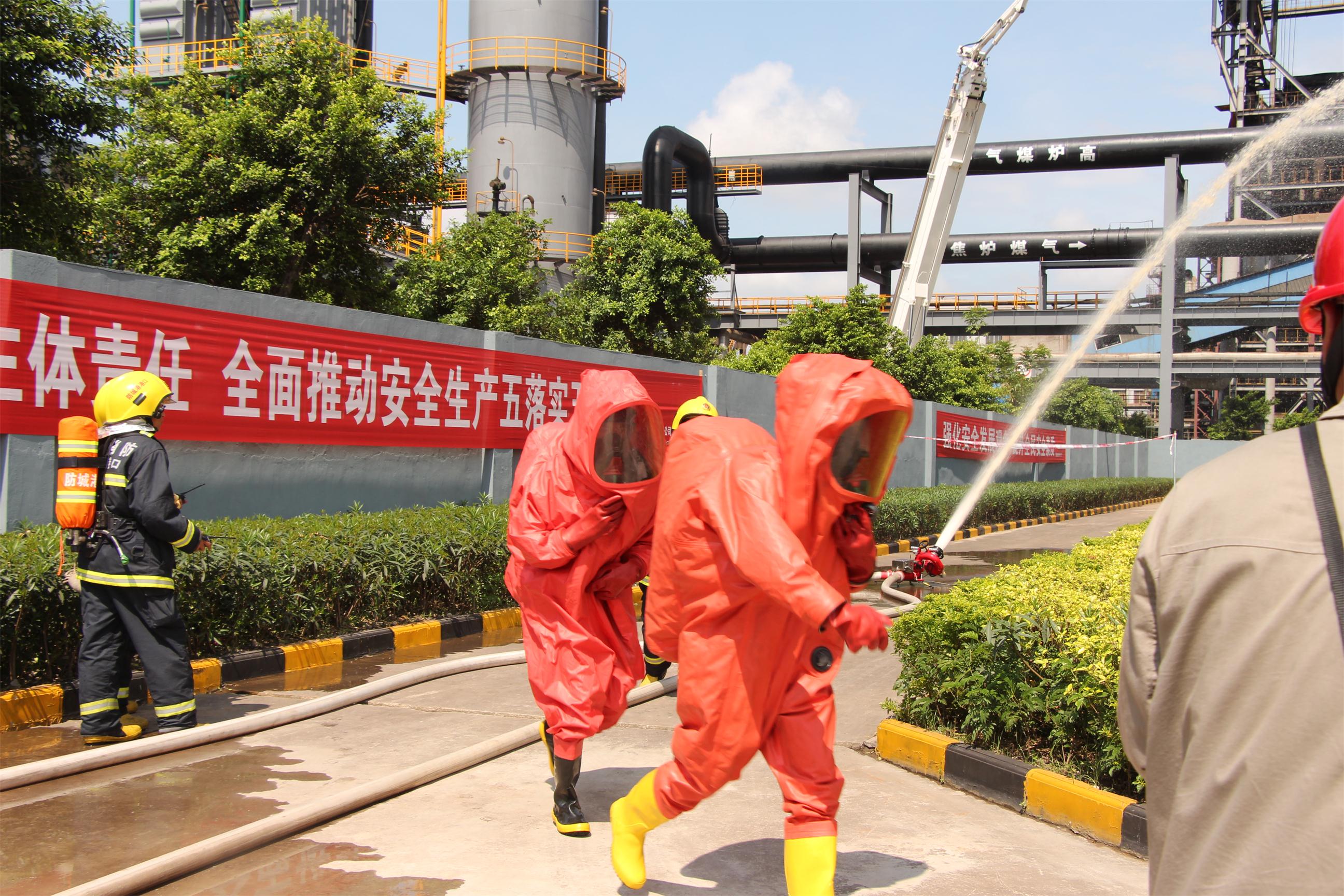 今年6月份是全国第15个安全生产月,今年安全生产月的主题是“强化安全发展理念,提升全民安全意识”。为了响应这个主题,防城港市应急办、市安监局组织全市安委会成员单位举行了一场针对冶金企业煤气泄漏的应急救援综合演练,于6月7日上午,在我公司举行。