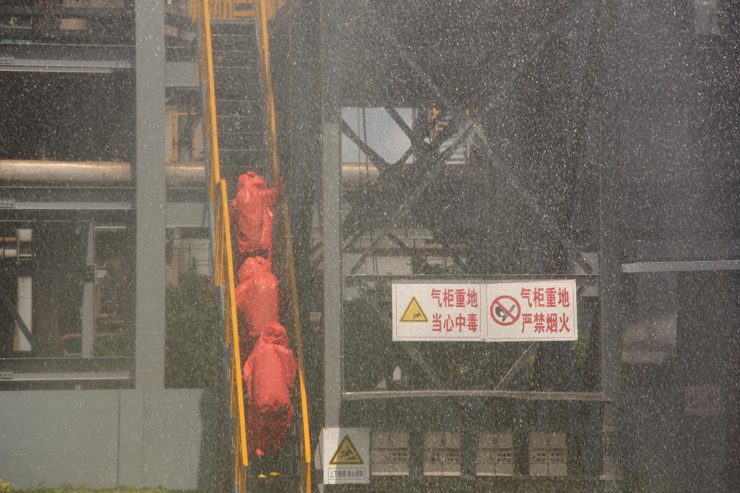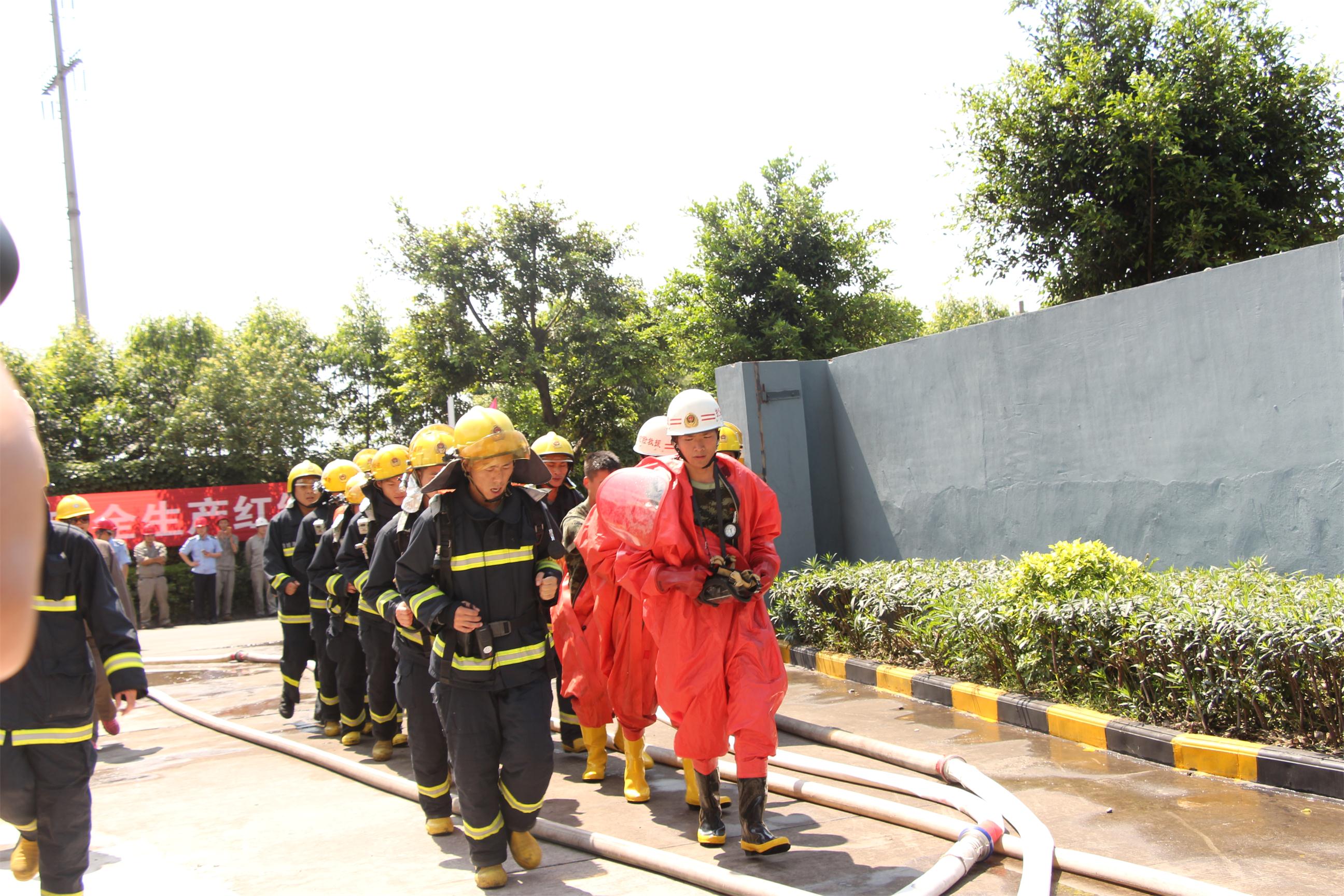 此次演练,是防城港市深入开展“安全生产月”的活动之一,是对广西渝桂化工有限公司“4.16”液化石油气泄露火灾事故所暴露的应急联动问题的再梳理。通过综合演练,进一步强化了防城港市各生产企业,各部门单位的应急处理能力。(图为演练现场照片)