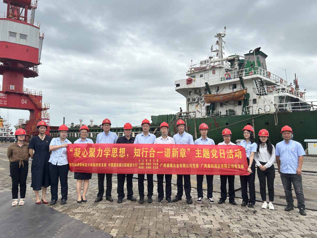 8月26日,华体会手机平台党委,原防城港银保监分局第四党支部,中国建设银行防城港分行办公室、公司部、风险部党支部,广西鑫田海运有限公司党支部,为深入学习贯彻习近平新时代中国特色社会主义思想,牢牢把握“学思想、强党性、重实践、建新功”总要求,坚持以学铸魂、以学增智、以学正风、以学促干,更好服务西部陆海新通道建设,促进北部湾国际门户港高质量发展,联合开展“凝心聚力学思想,知行合一谱新章”主题党日活动,并参观了盛隆码头公司。